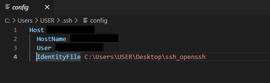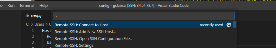 command palette (ctrl + shift + p) > Remote SSH config file 클릭 > Users 디렉토리(상단) 클릭