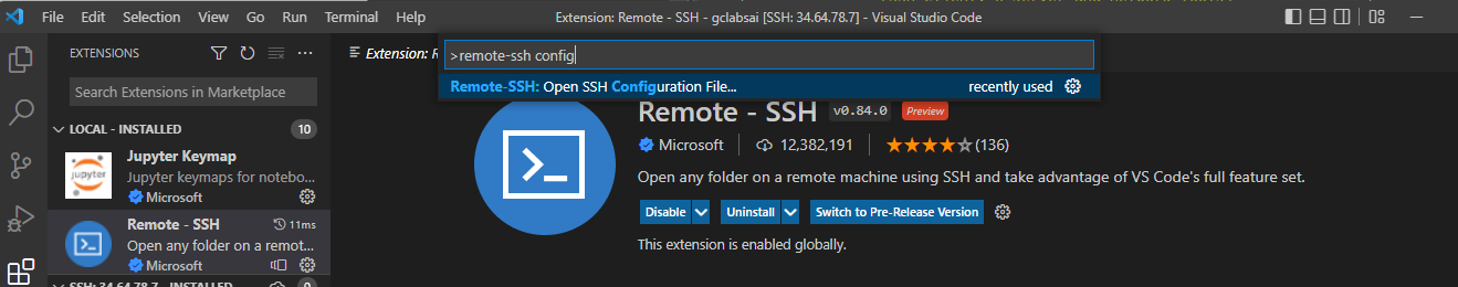- extension에서 Remote - SSH 검색하여 설치