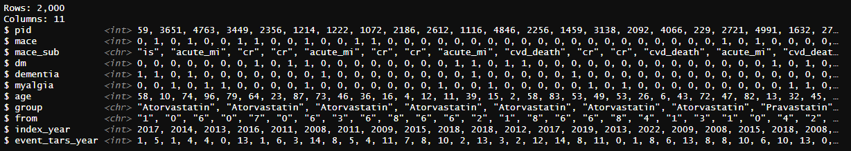 mace_sub = sample(c("acute_mi","is","cr","death","cvd_death"), 2000, replace = T, prob = rep(0.2,5)),