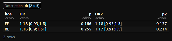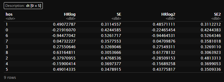 meta_now <- data.table(hos, HRlog, SE, HRlog2, SE2)