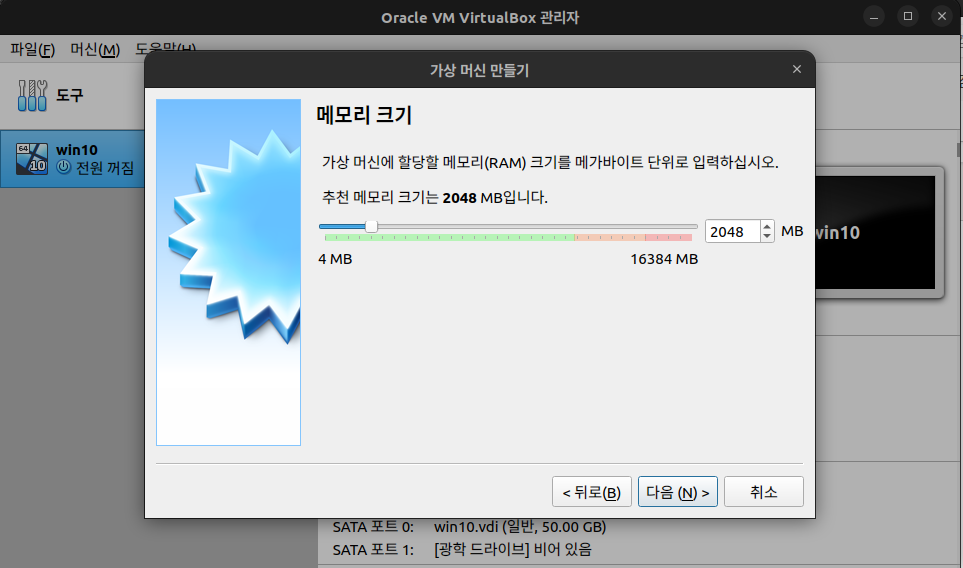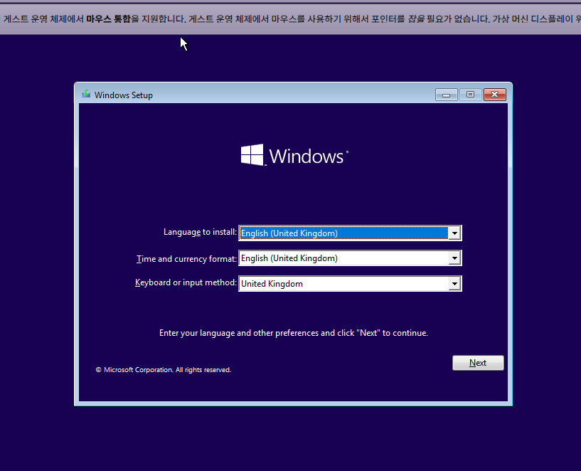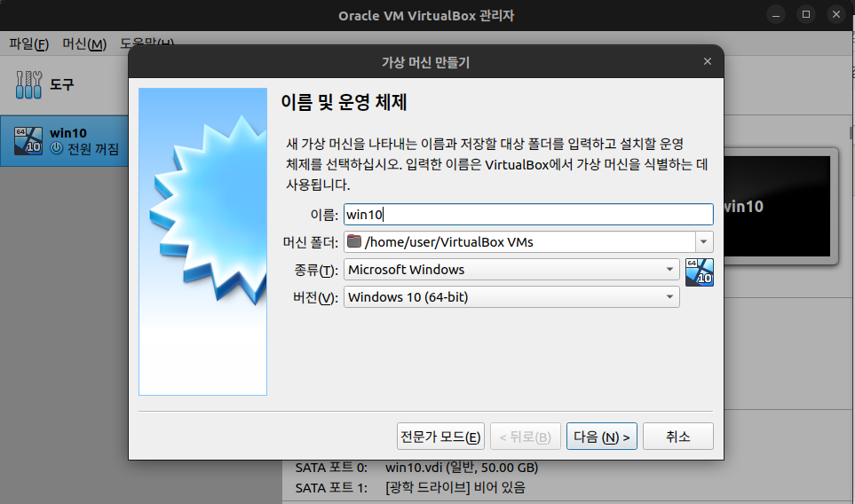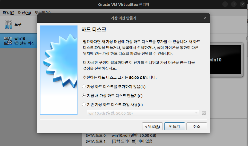 - 새로 만들기 > window 10 설정 > 옵션 선택 > 완료