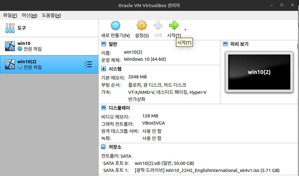 - 설정 > 디스크 > 광학디스크 만들기 > iso 선택