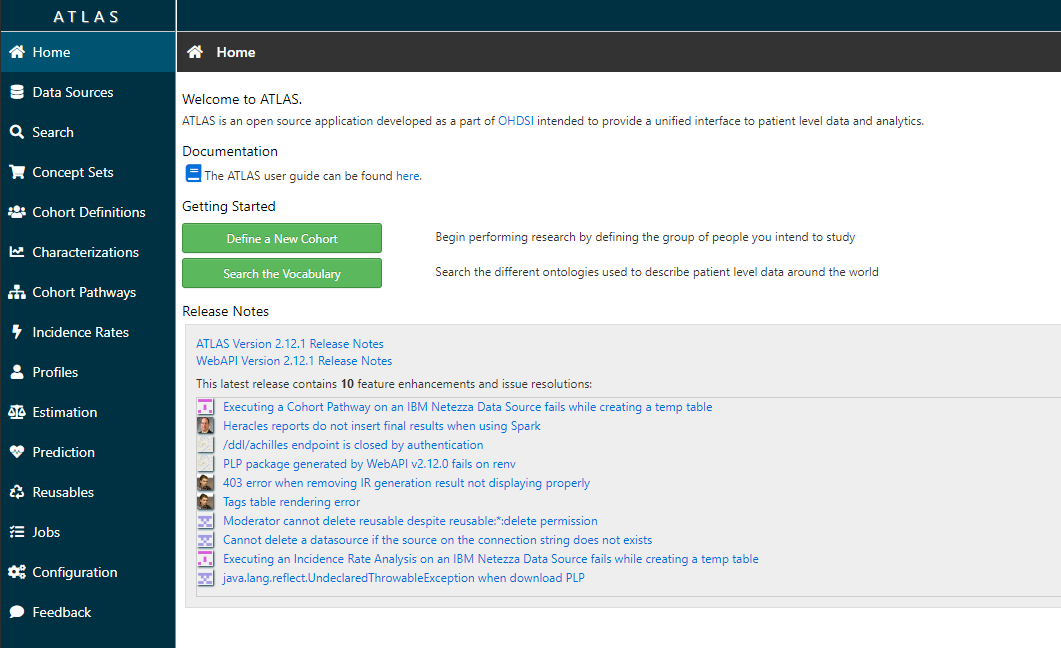 - 데모 홈페이지: https://atlas-demo.ohdsi.org/#/home