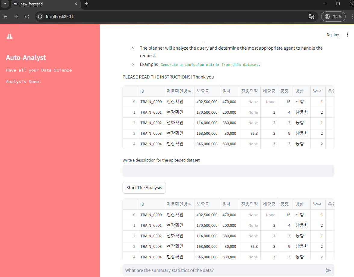 - 데이터 분석 관련 자유롭게 질의하여 테스트한다