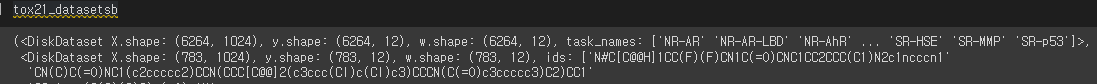 tox21_tasks, tox21_datasets, transformers = dc.molnet.load_tox21()