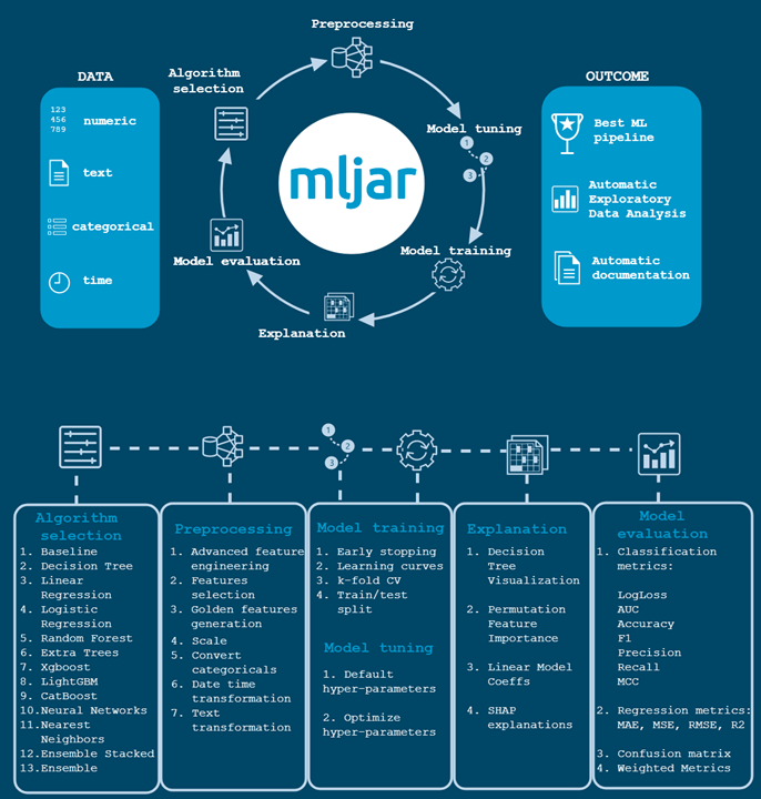 Description The mljar-supervised is an Automated Machine Learning Python package that works with tabular data. It is designed to save time for a data scientist. It abstracts the common way to preprocess the data, construct the machine learning models, and